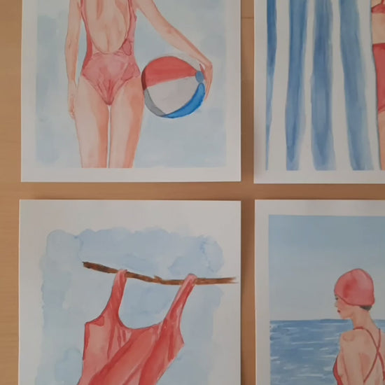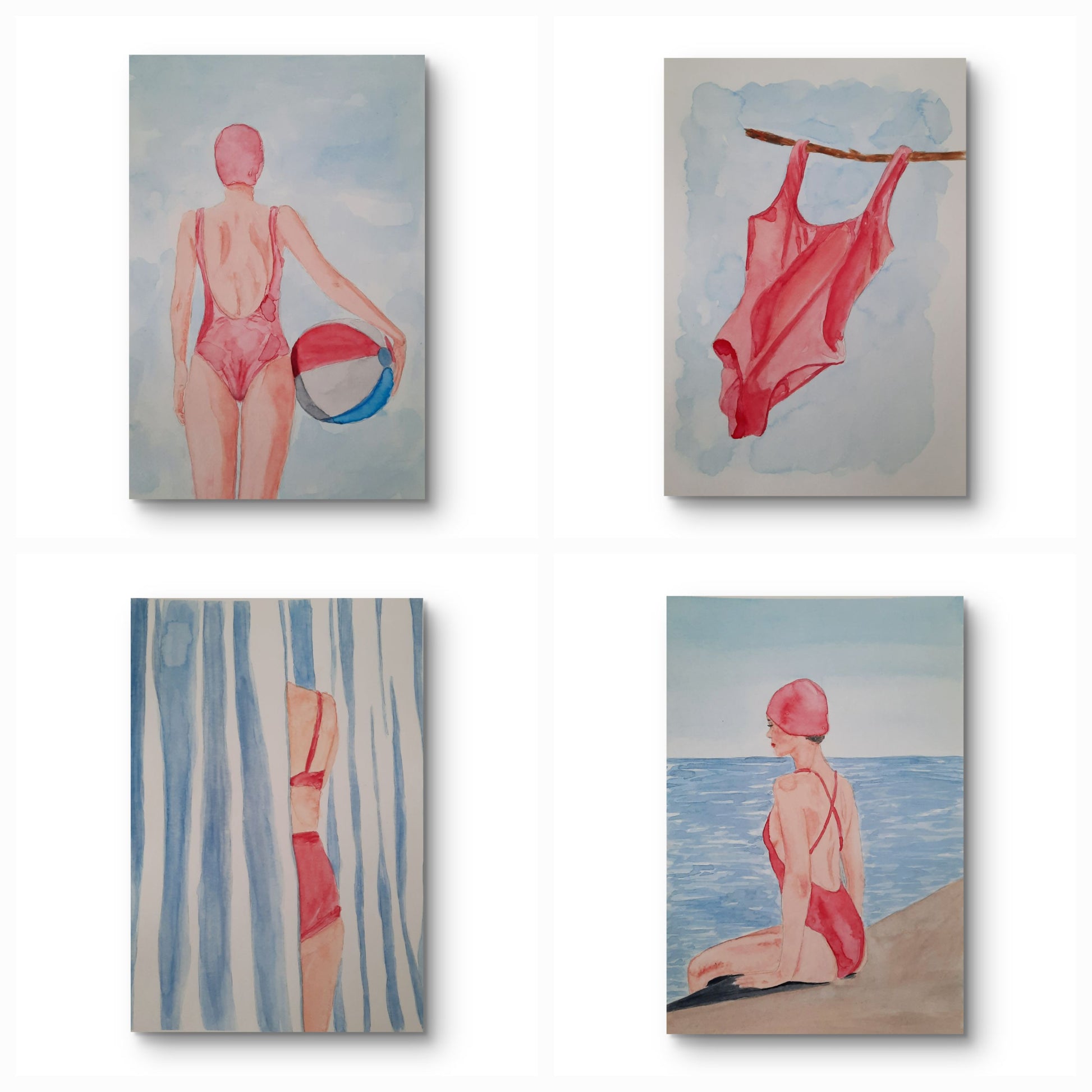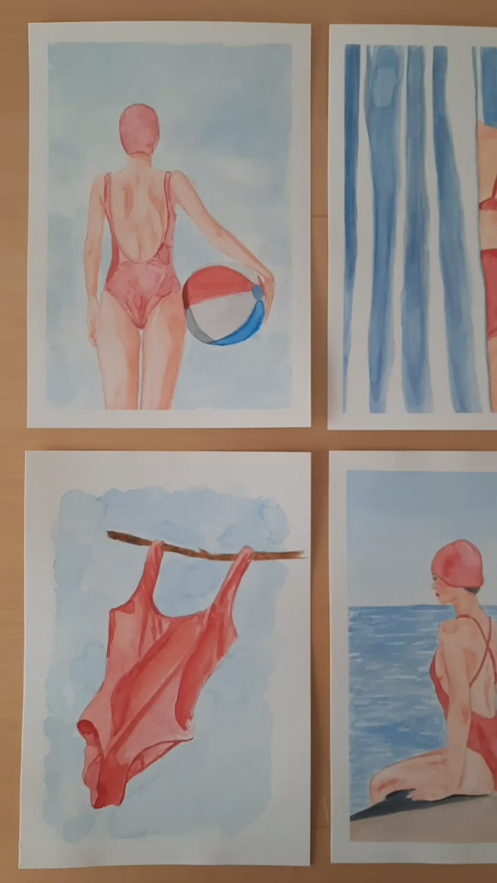 These watercolor paintings capture the essence of summer with a soft and nostalgic touch.