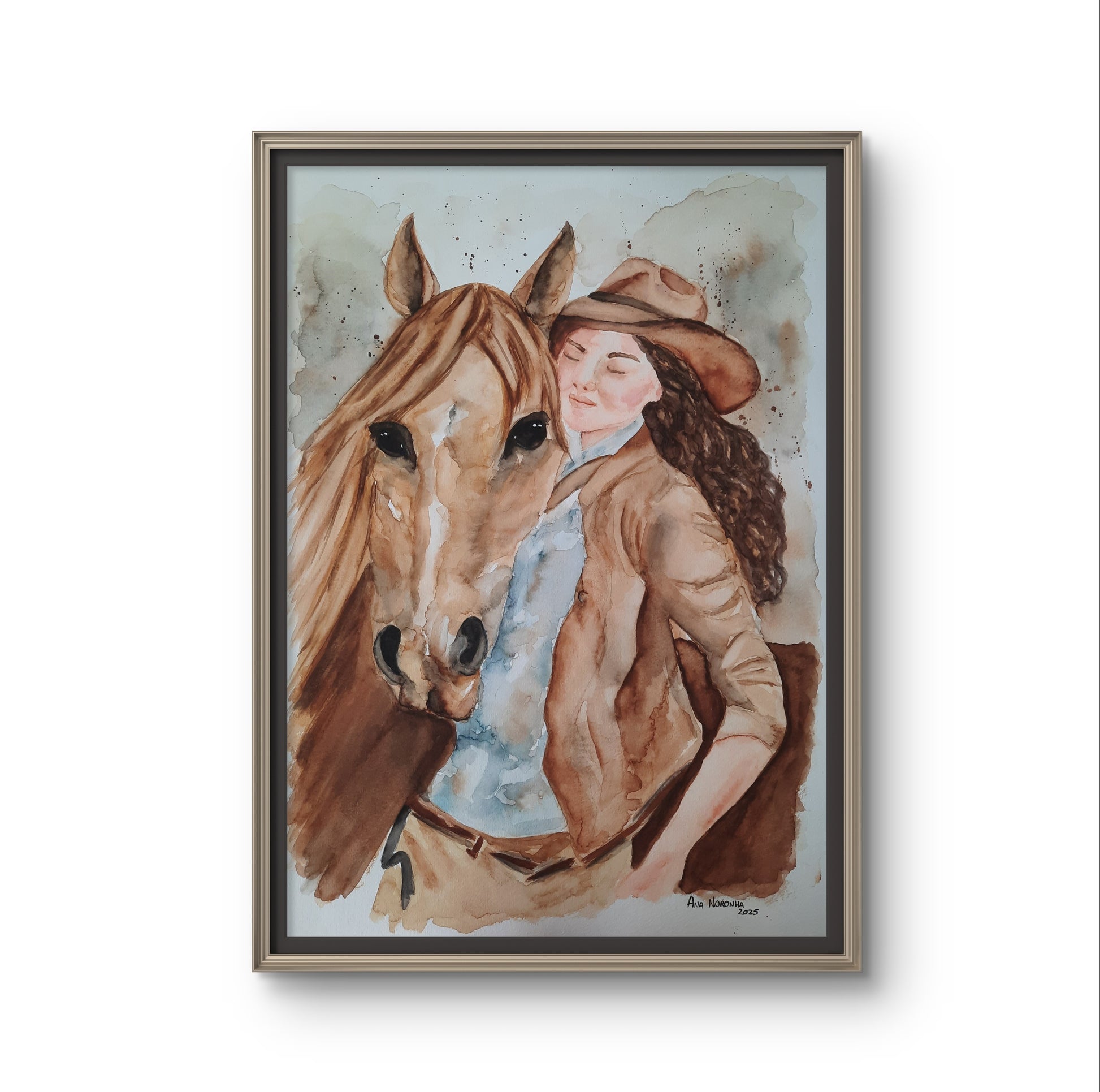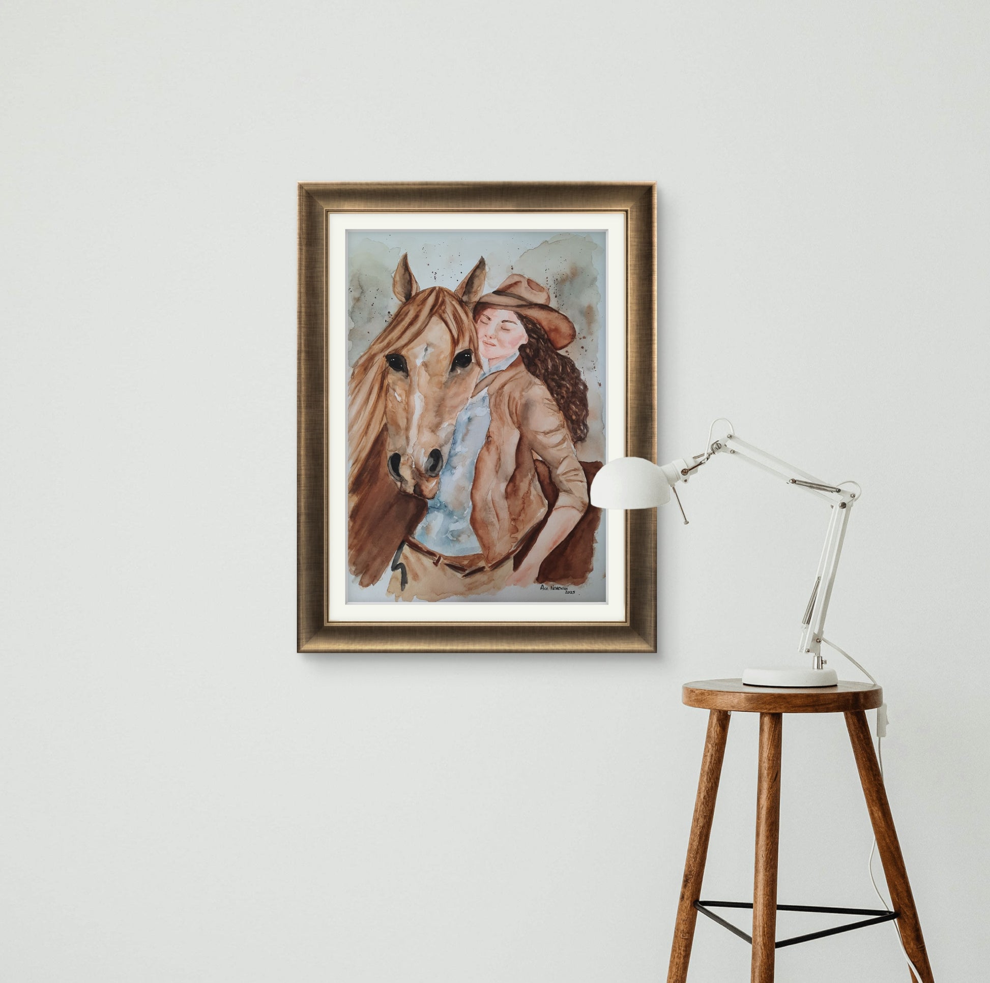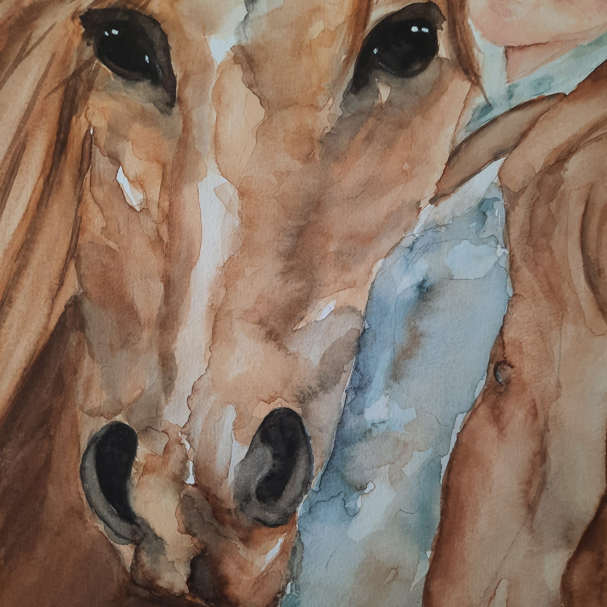 Dust & Grace captures the unspoken bond between a woman and her horse, where strength and serenity coexist in perfect harmony. Painted in soft, earthy tones, this A3 watercolor piece radiates warmth, trust, and quiet resilience. The subject’s relaxed posture and closed eyes, gently leaning into the horse, evoke a moment of pure connection—rooted in nature, grounded in emotion.