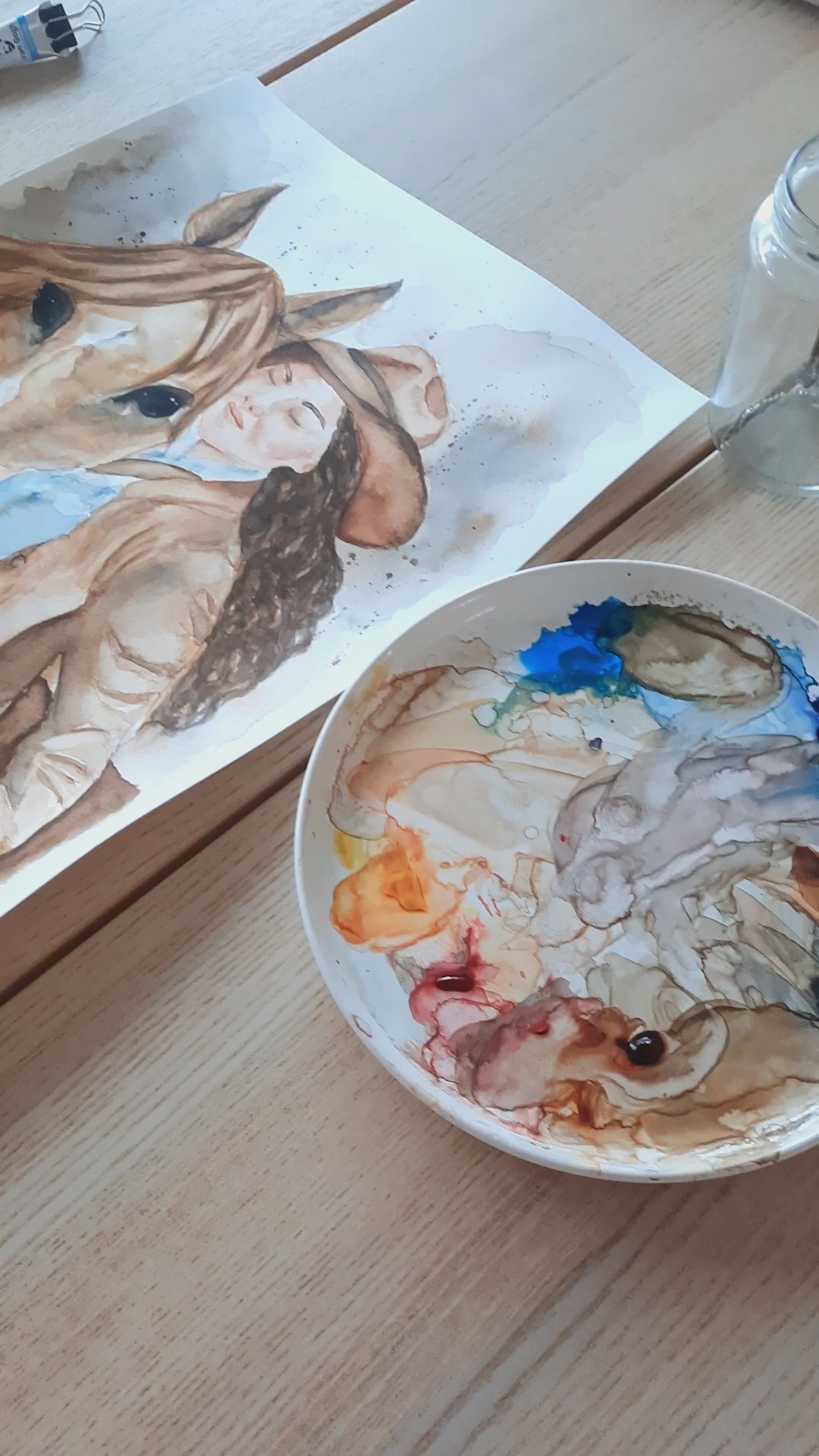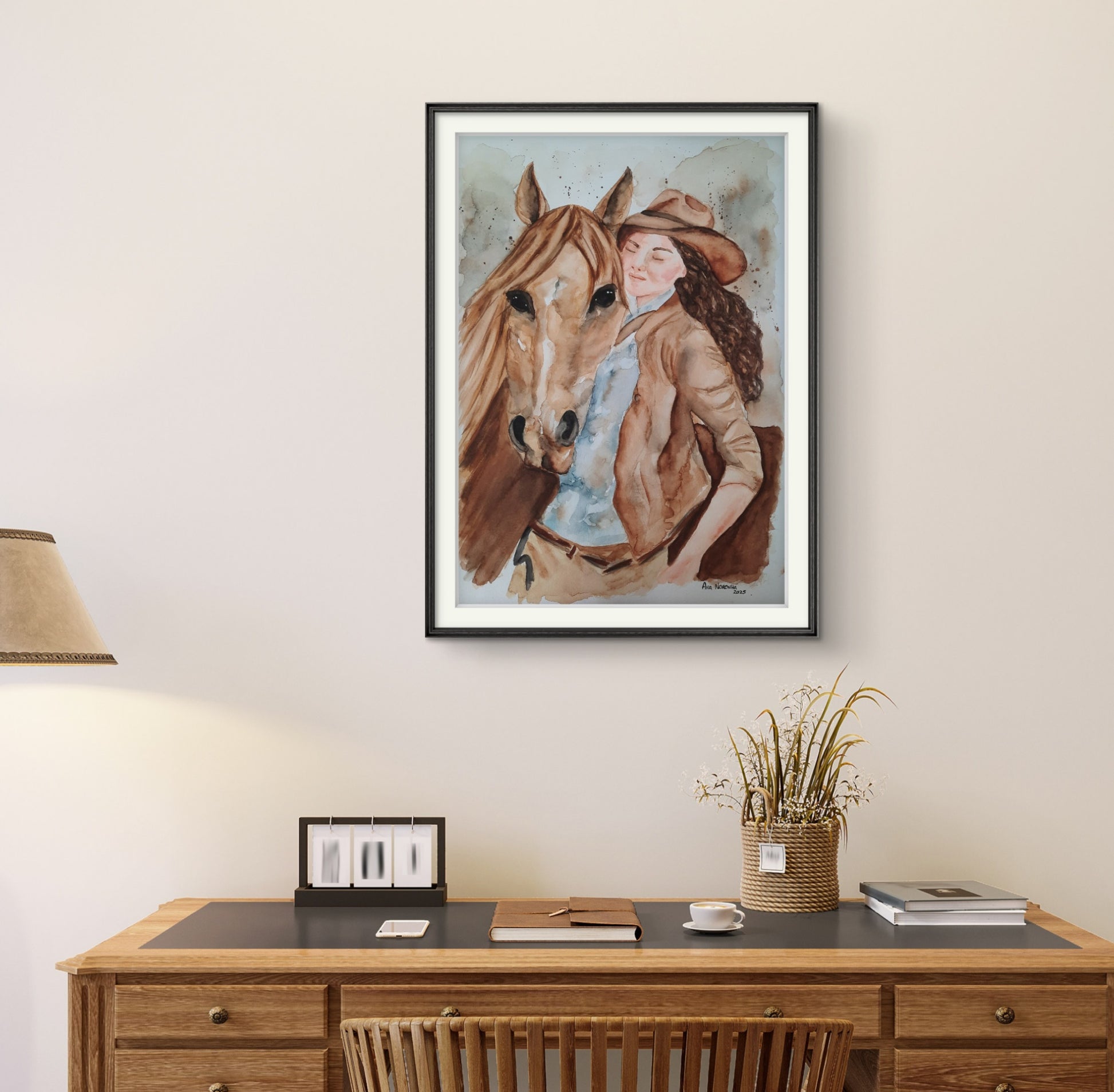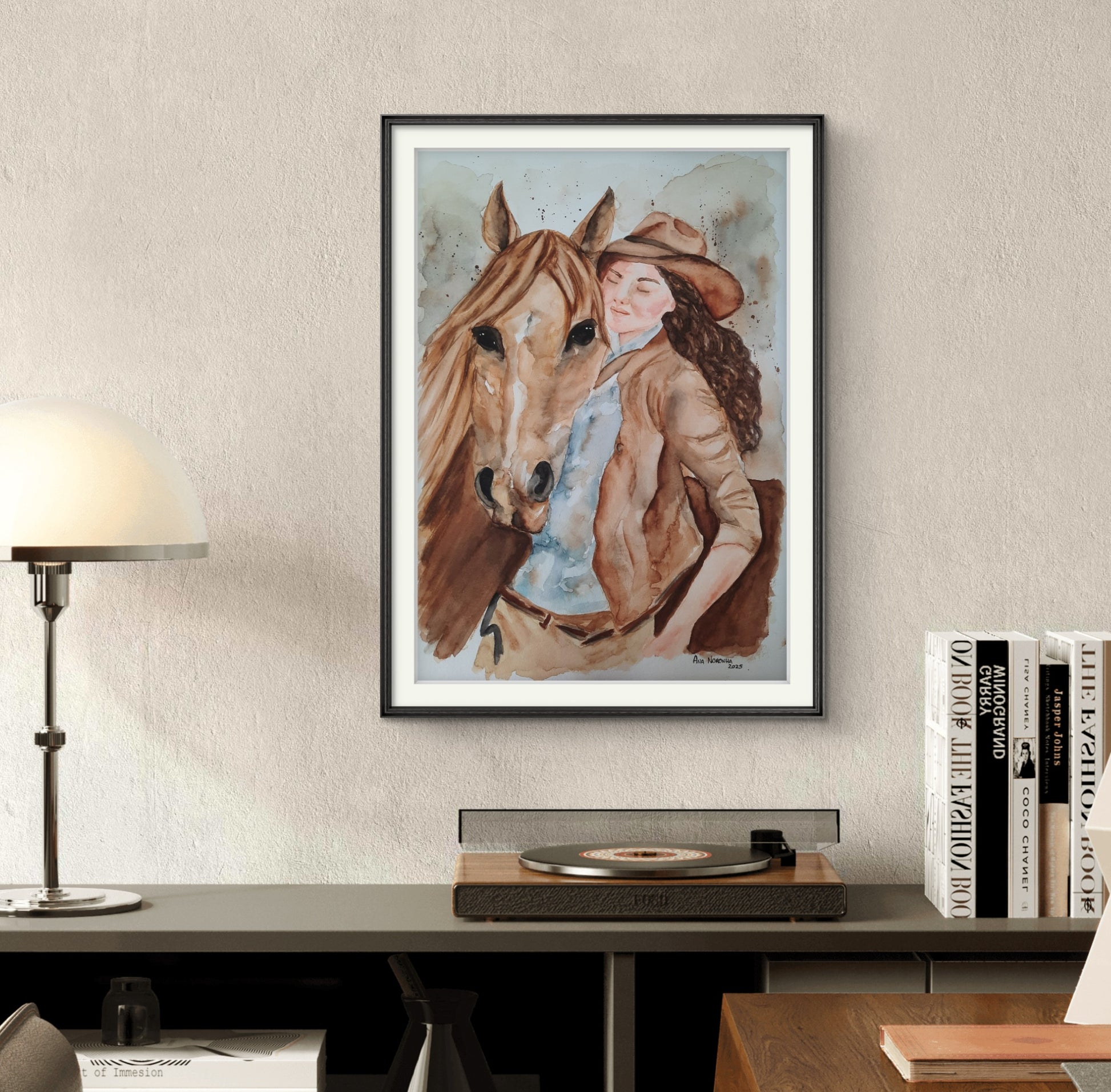 Dust & Grace captures the unspoken bond between a woman and her horse, where strength and serenity coexist in perfect harmony. Painted in soft, earthy tones, this A3 watercolor piece radiates warmth, trust, and quiet resilience. The subject’s relaxed posture and closed eyes, gently leaning into the horse, evoke a moment of pure connection—rooted in nature, grounded in emotion.