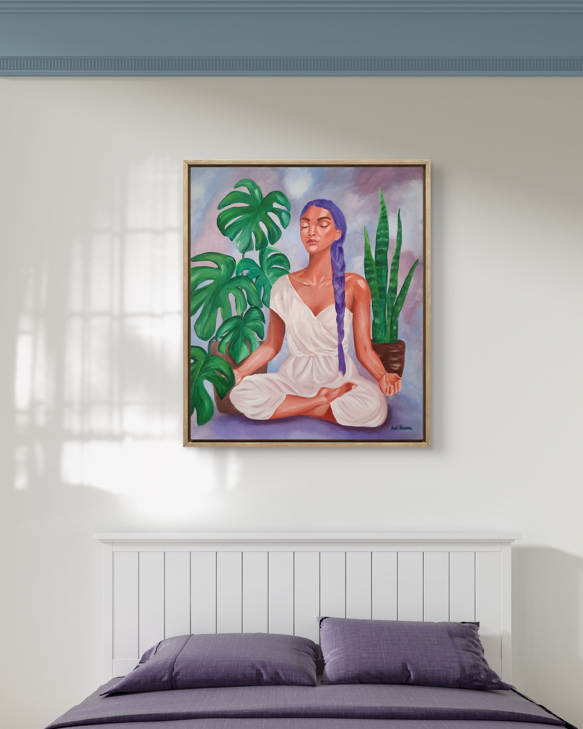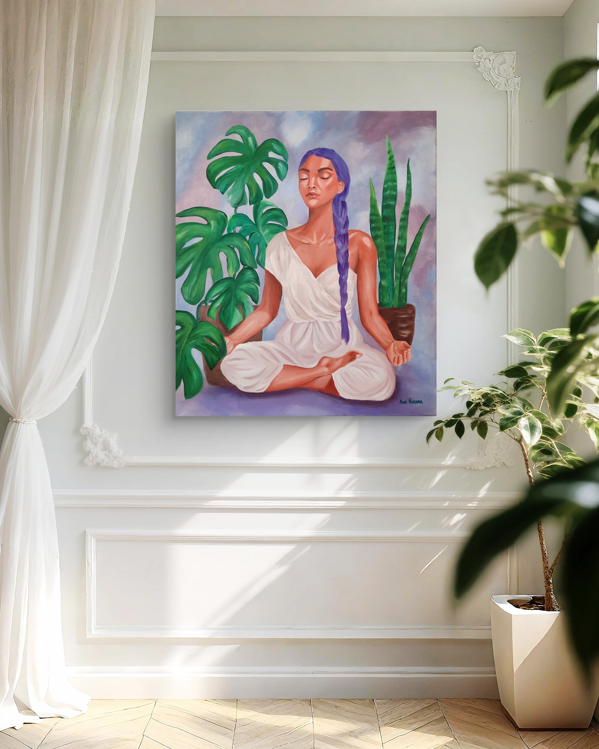 Echoes of a Silent Mind invites you to pause and listen to the quiet within. Painted in soft lilac tones, this work draws on the psychology of color, where lilac symbolizes transformation, emotional balance, and spiritual awareness. The composition offers a sense of serenity and meditative stillness, making it a piece that not only enhances a space aesthetically but also nurtures a feeling of inner calm.