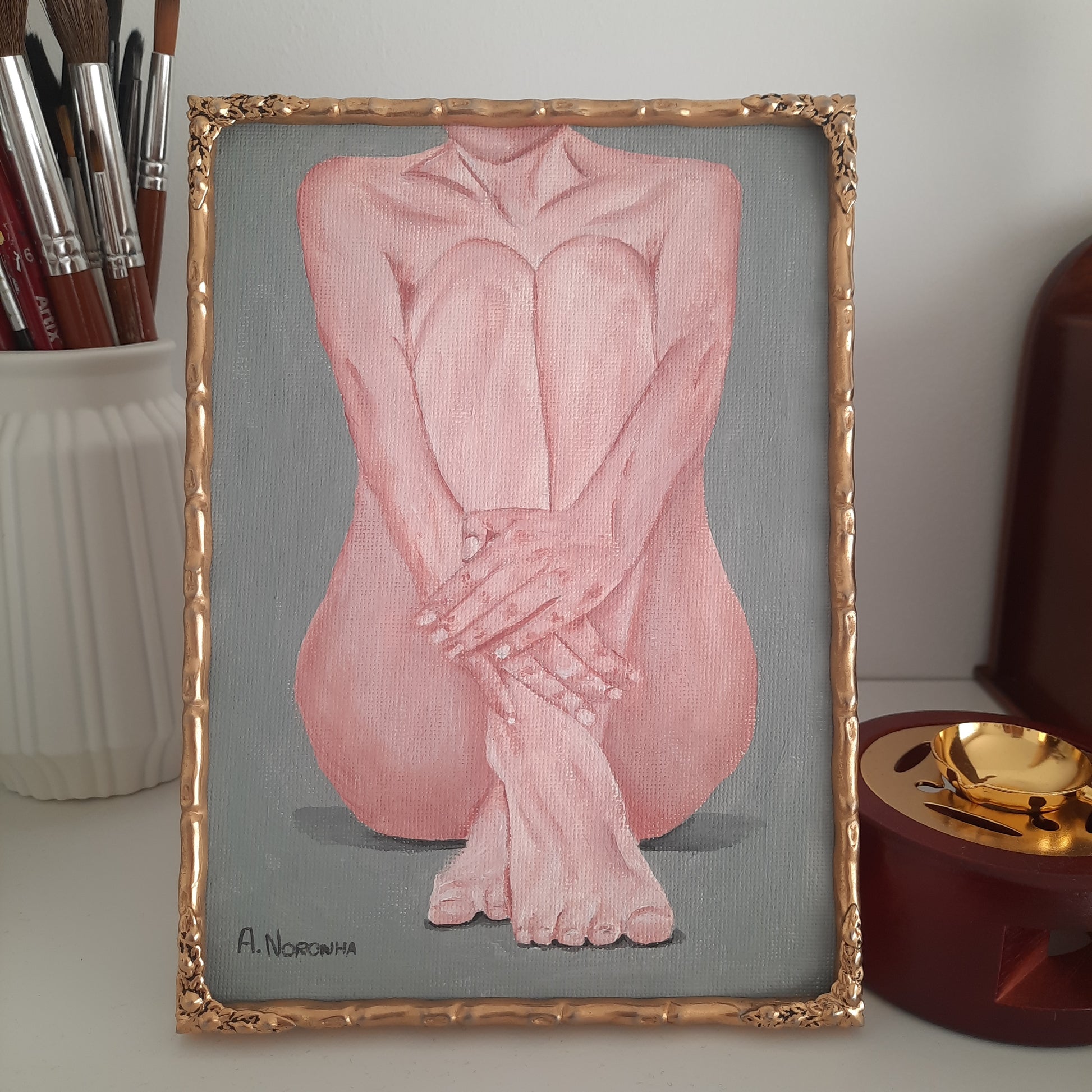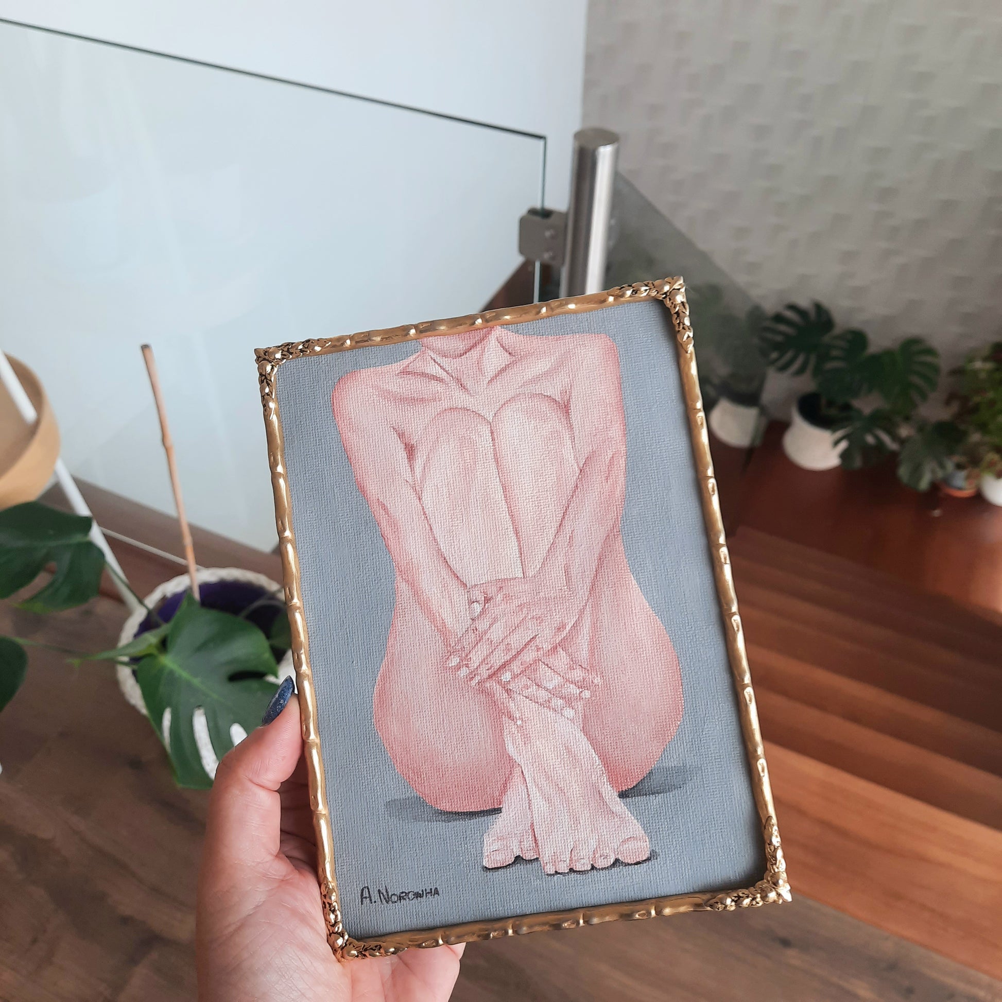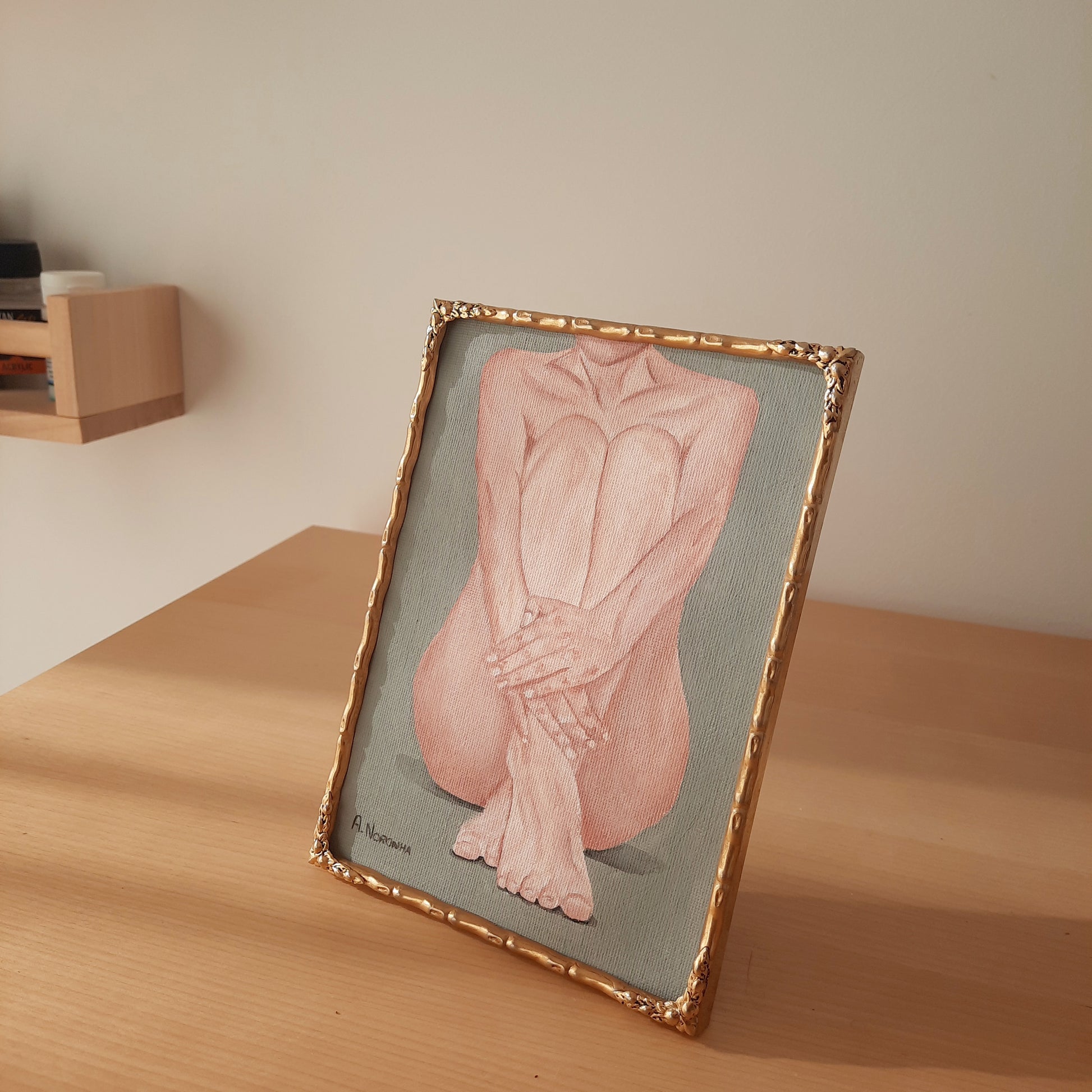 "Hidden in Light" is a 100% handmade original acrylic painting on a canvas pad, presented in a vintage frame without glass. Unique, signed, and dated on the back.
