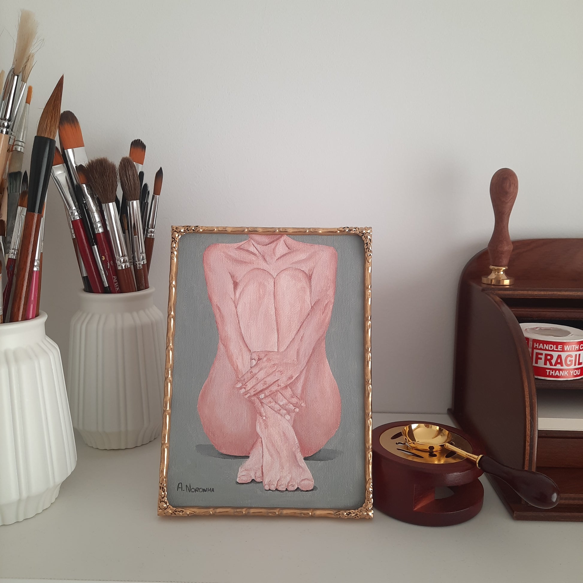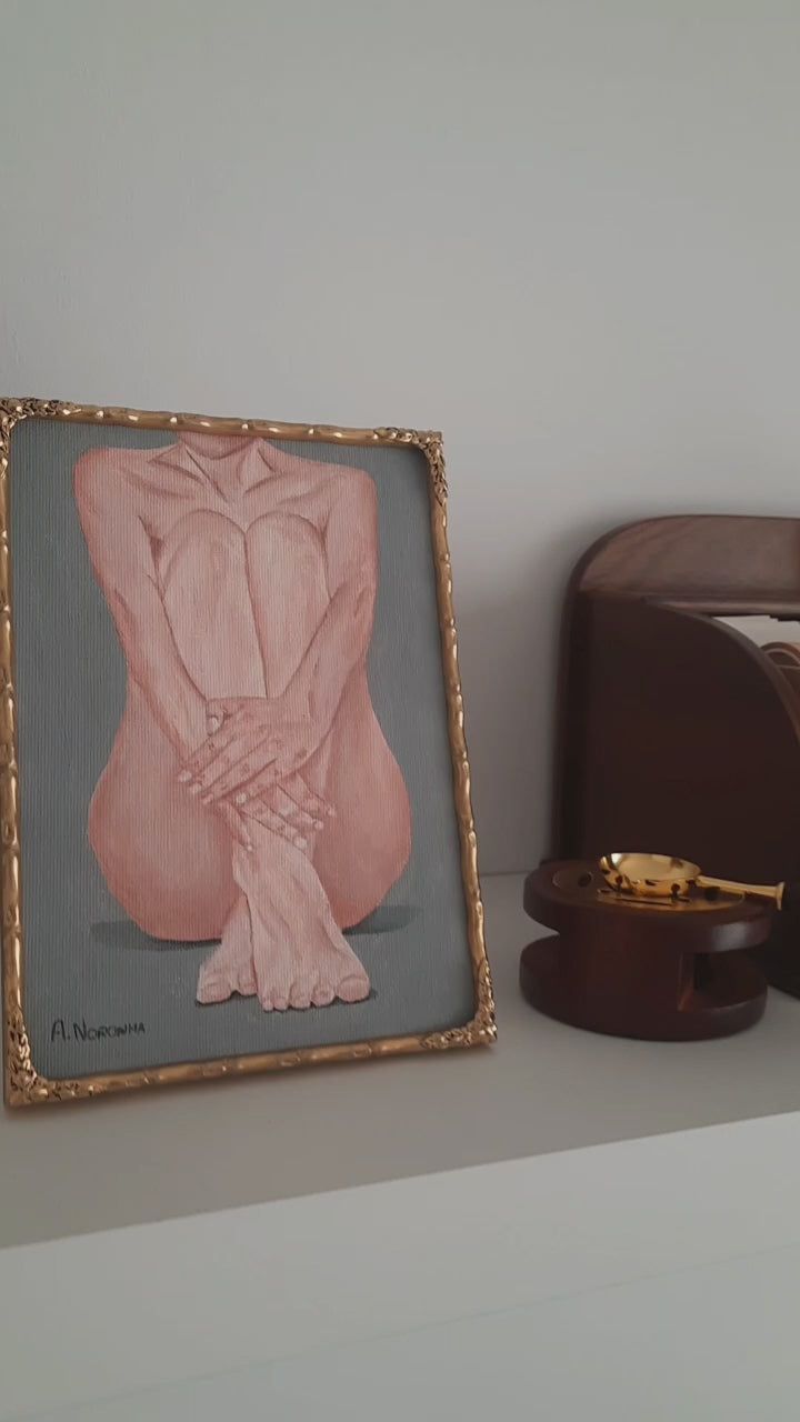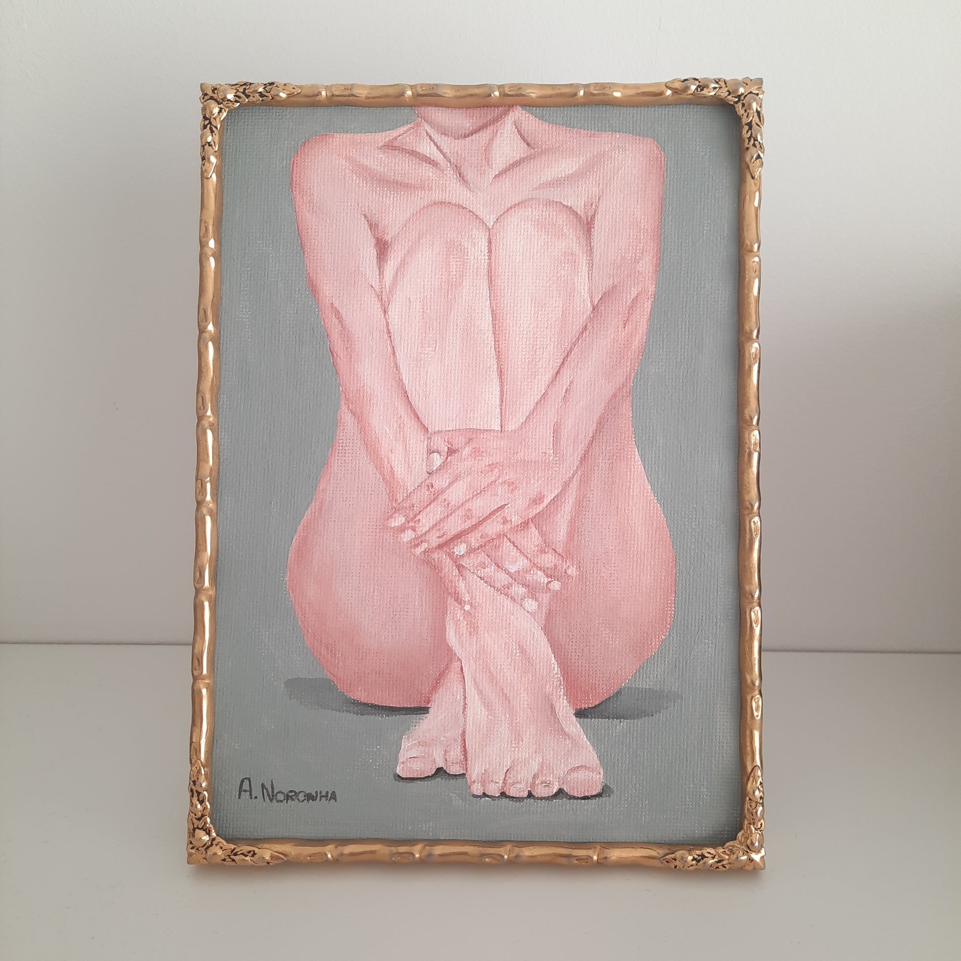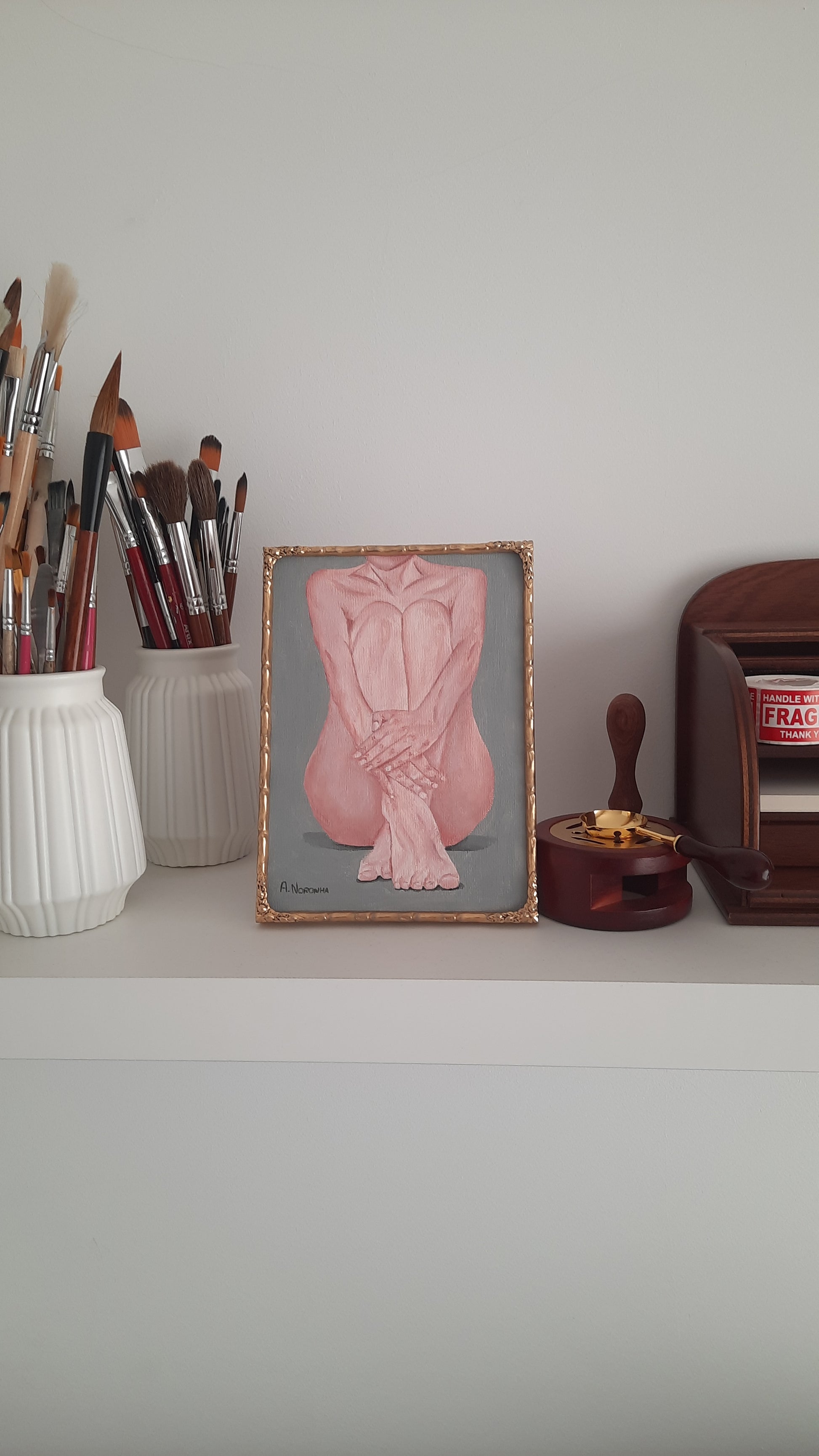 "Hidden in Light" is a 100% handmade original acrylic painting on a canvas pad, presented in a vintage frame without glass. Unique, signed, and dated on the back.
