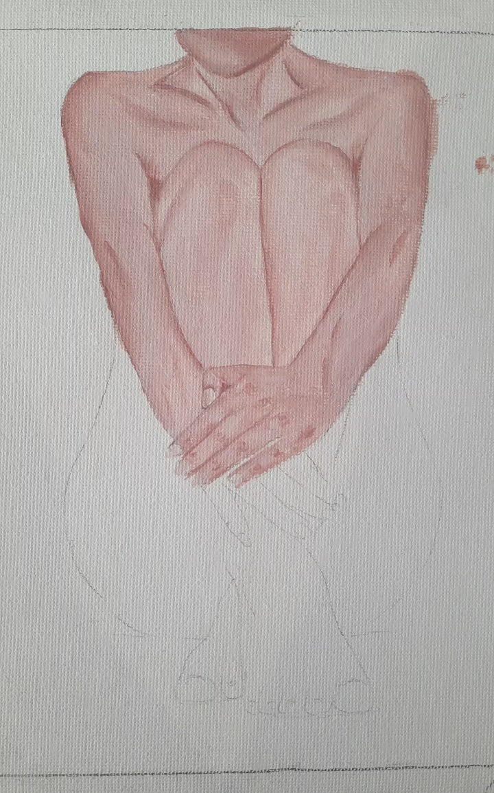 "Hidden in Light" emphasizing the human form without a visible face, suggests themes of vulnerability, introspection, and anonymity—common elements in conceptual and modern figurative art. The soft color palette and delicate brushwork enhance the feeling of lightness and contemplation.
