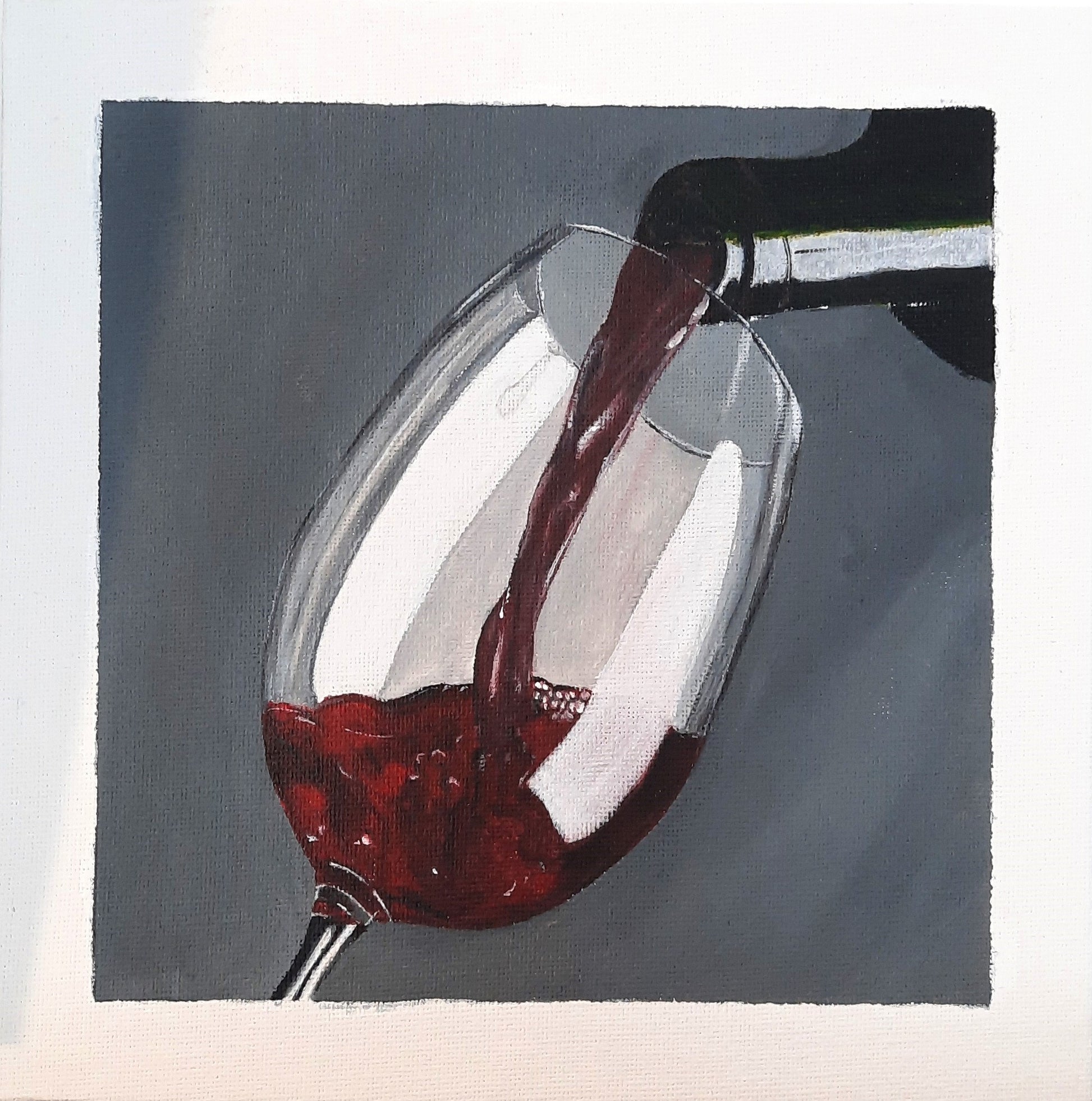 "It's Friday" is an original acrylic painting celebrating the joy of unwinding at the end of the week. A bottle gracefully pours wine into a glass, capturing the perfect Friday night ritual in a vibrant and expressive composition.