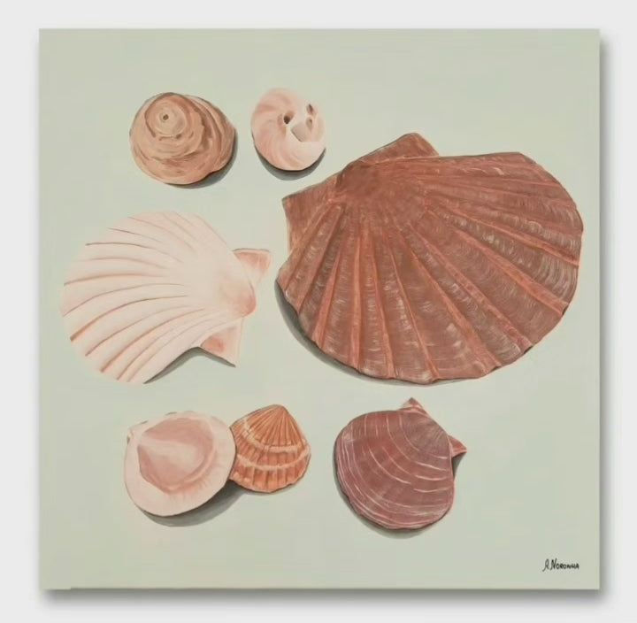 "Nature’s Jewels" is an original acrylic painting on wood, signed and dated by the artist. Capturing the delicate beauty of seashells, this piece reflects the intricate textures and warm, earthy tones found in nature’s own treasures.