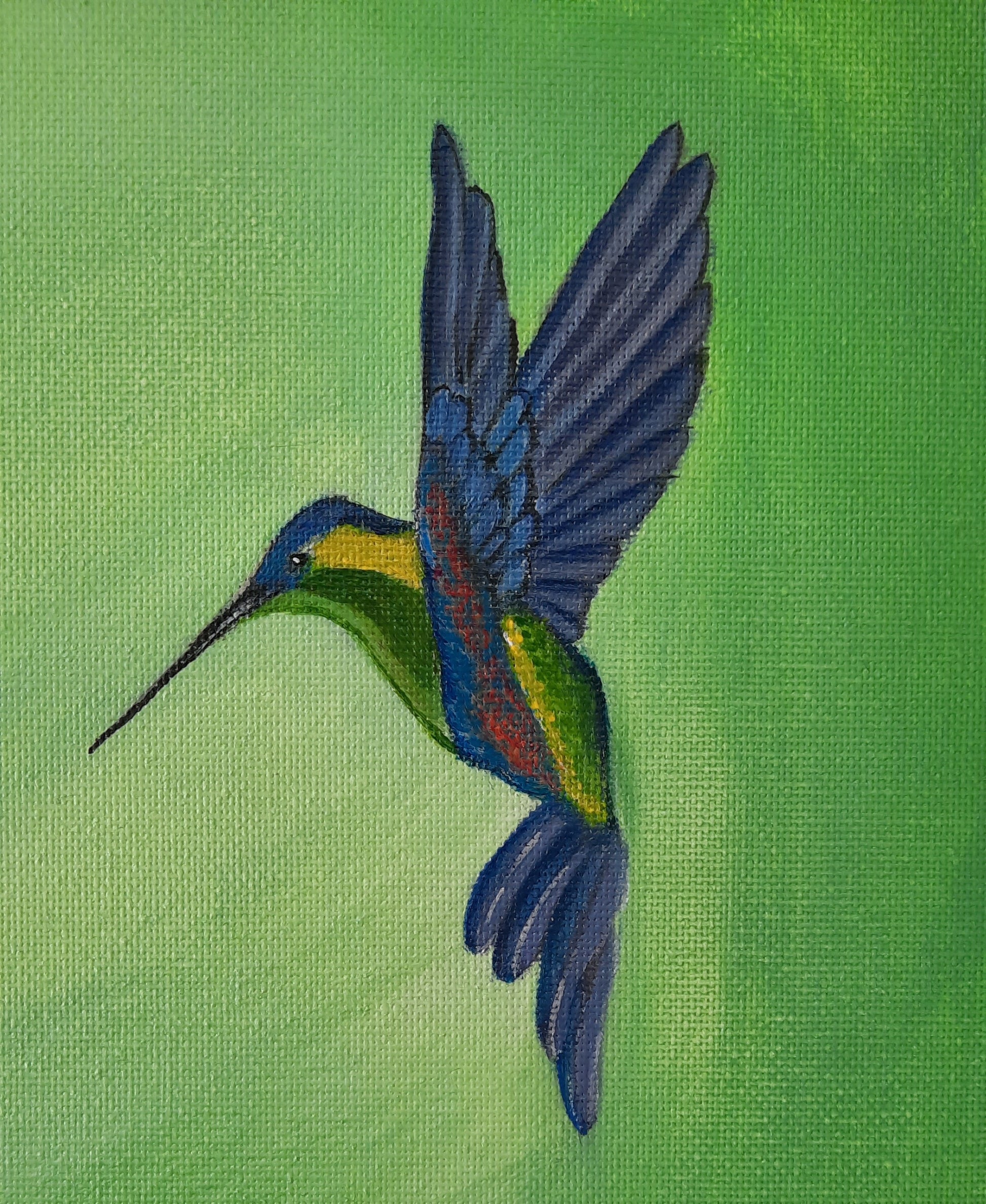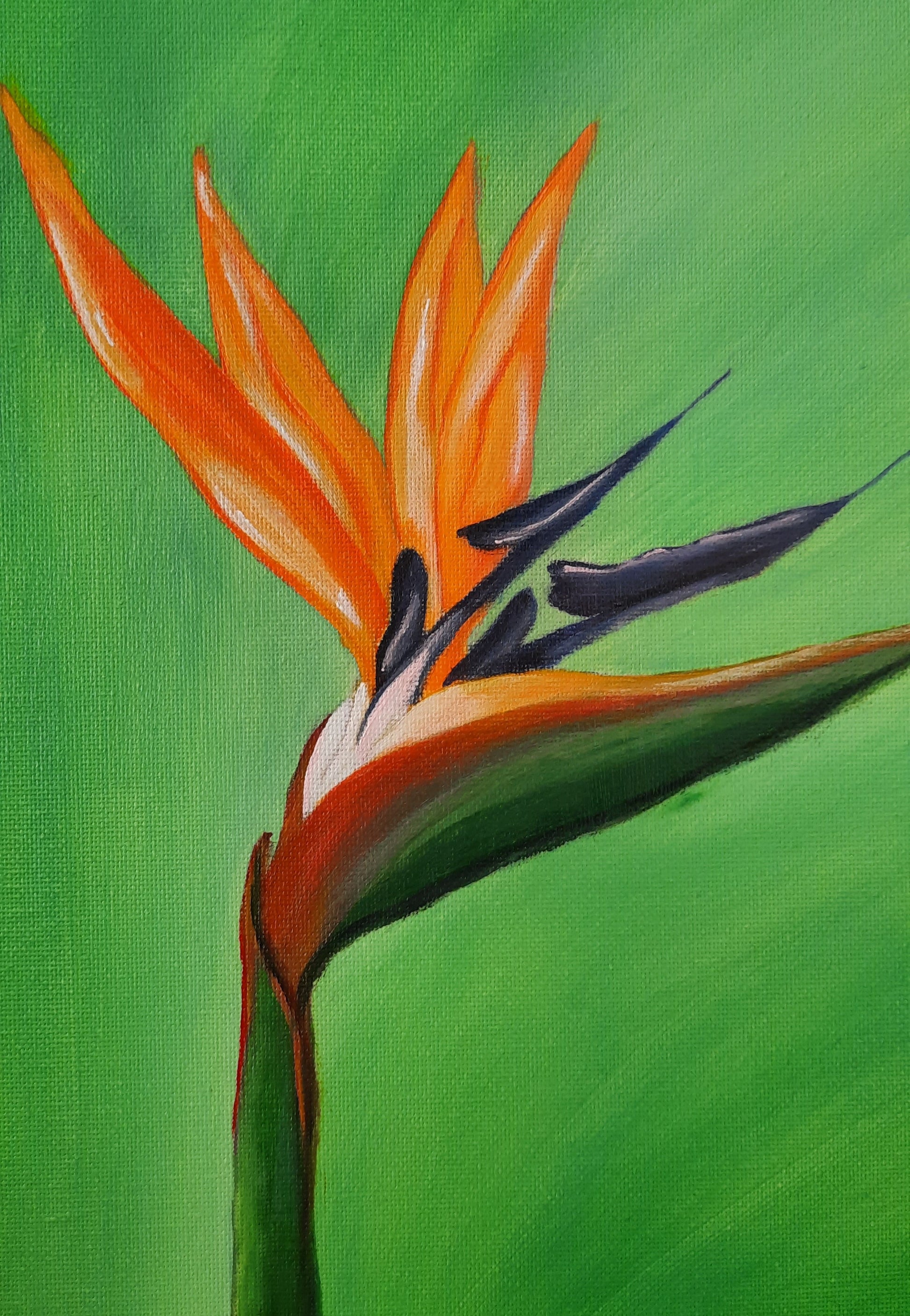 "O Beijo da Flor" (Portuguese for "The Kiss of the Flower") is an original acrylic painting on canvas, capturing the delicate and fleeting moment of a hummingbird approaching a Bird of Paradise flower. This piece symbolizes harmony, vitality, and the beauty of nature’s perfect synchronicity. The vibrant colors and soft background create a sense of movement and tranquility, making it a captivating addition to any space.