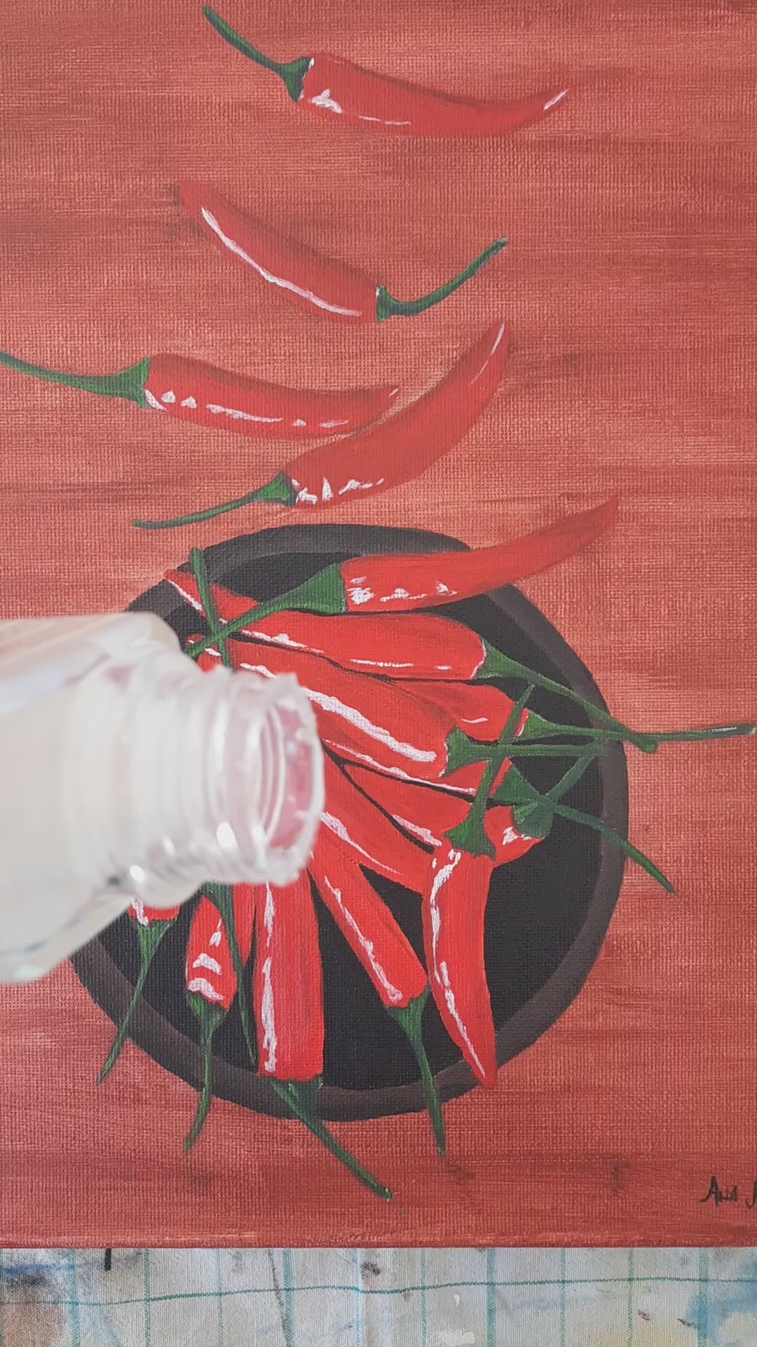 "Peppers on Plate" – Original Acrylic Painting 🌶️✨
