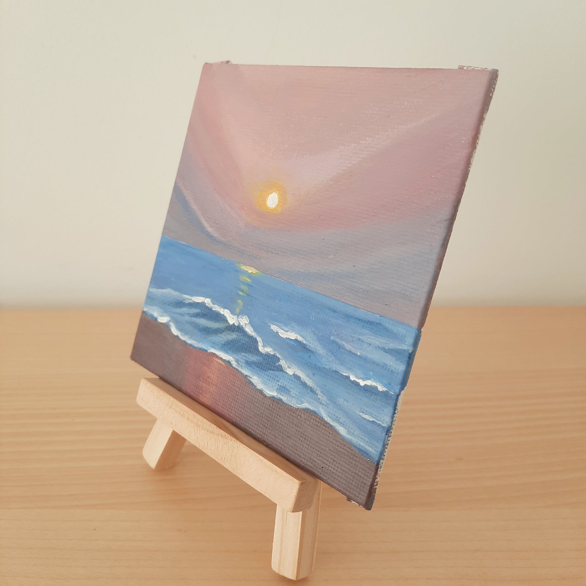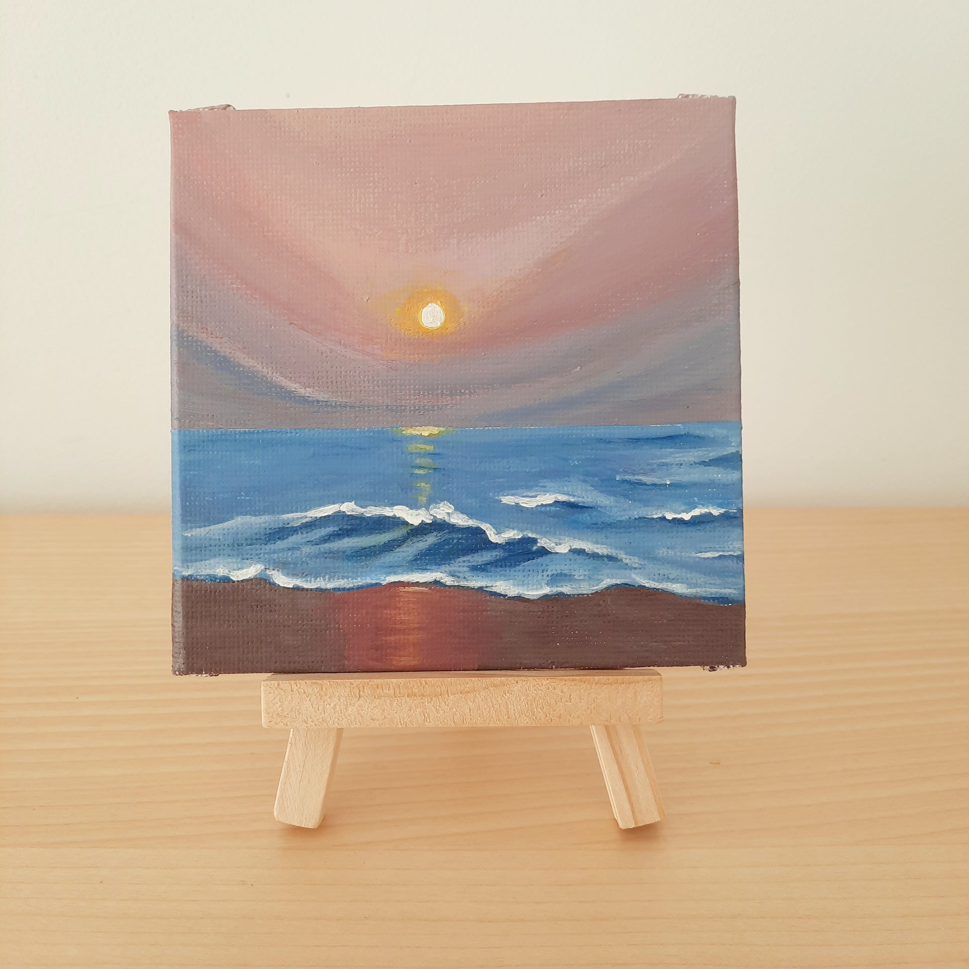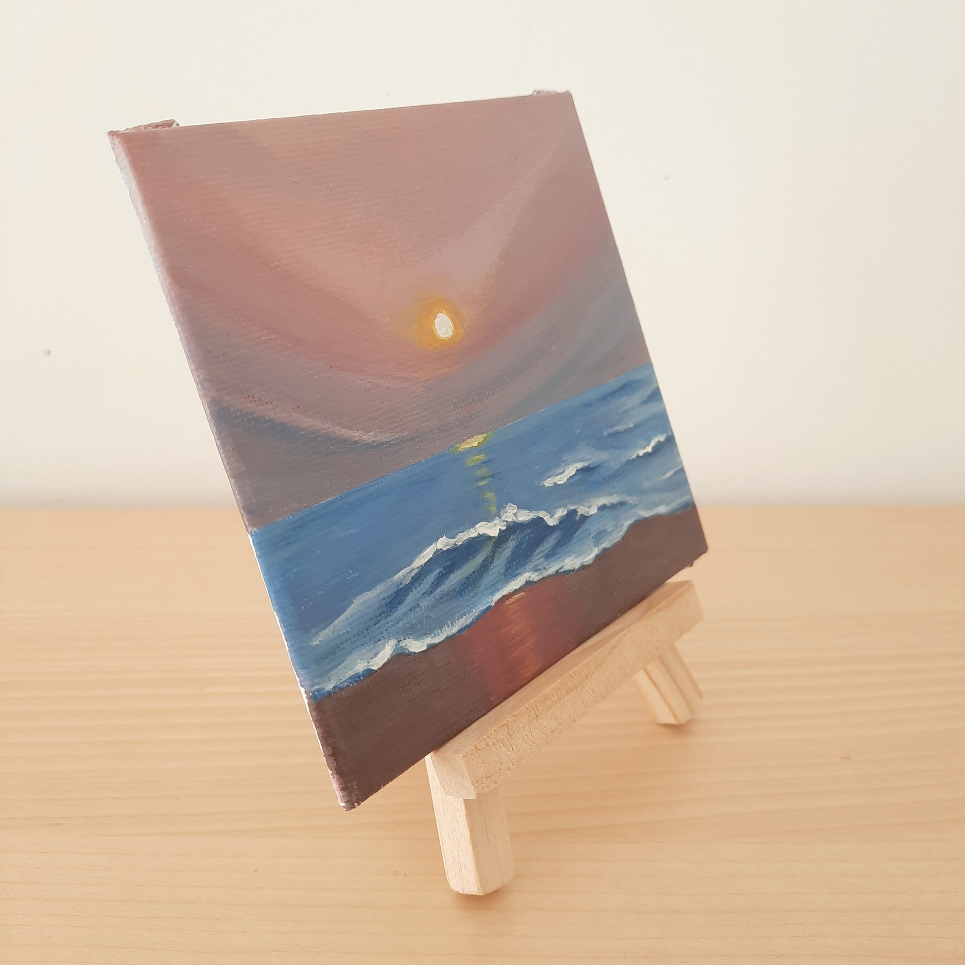 Mini Acrylic Painting on Canvas with Wooden Easel – Original Artwork