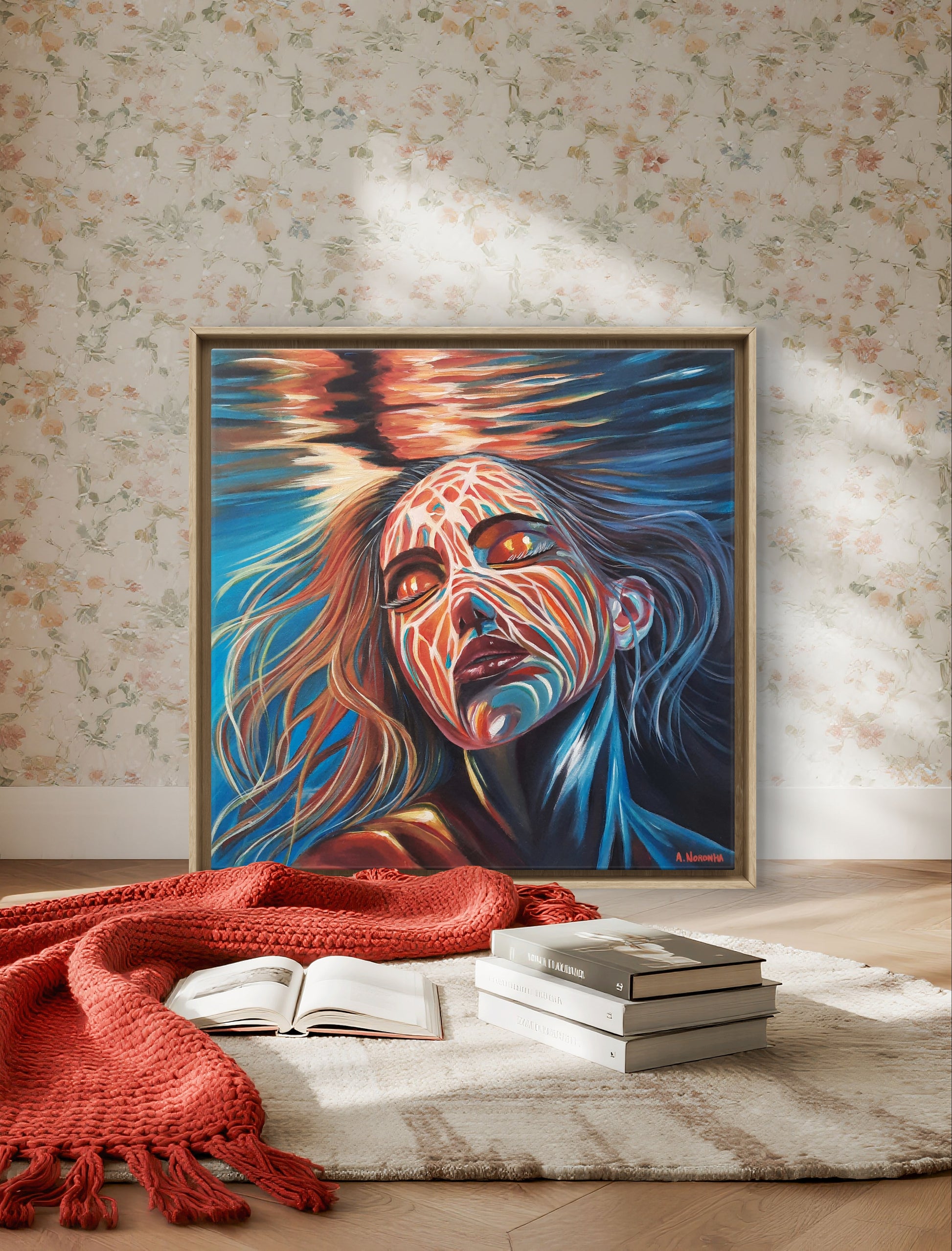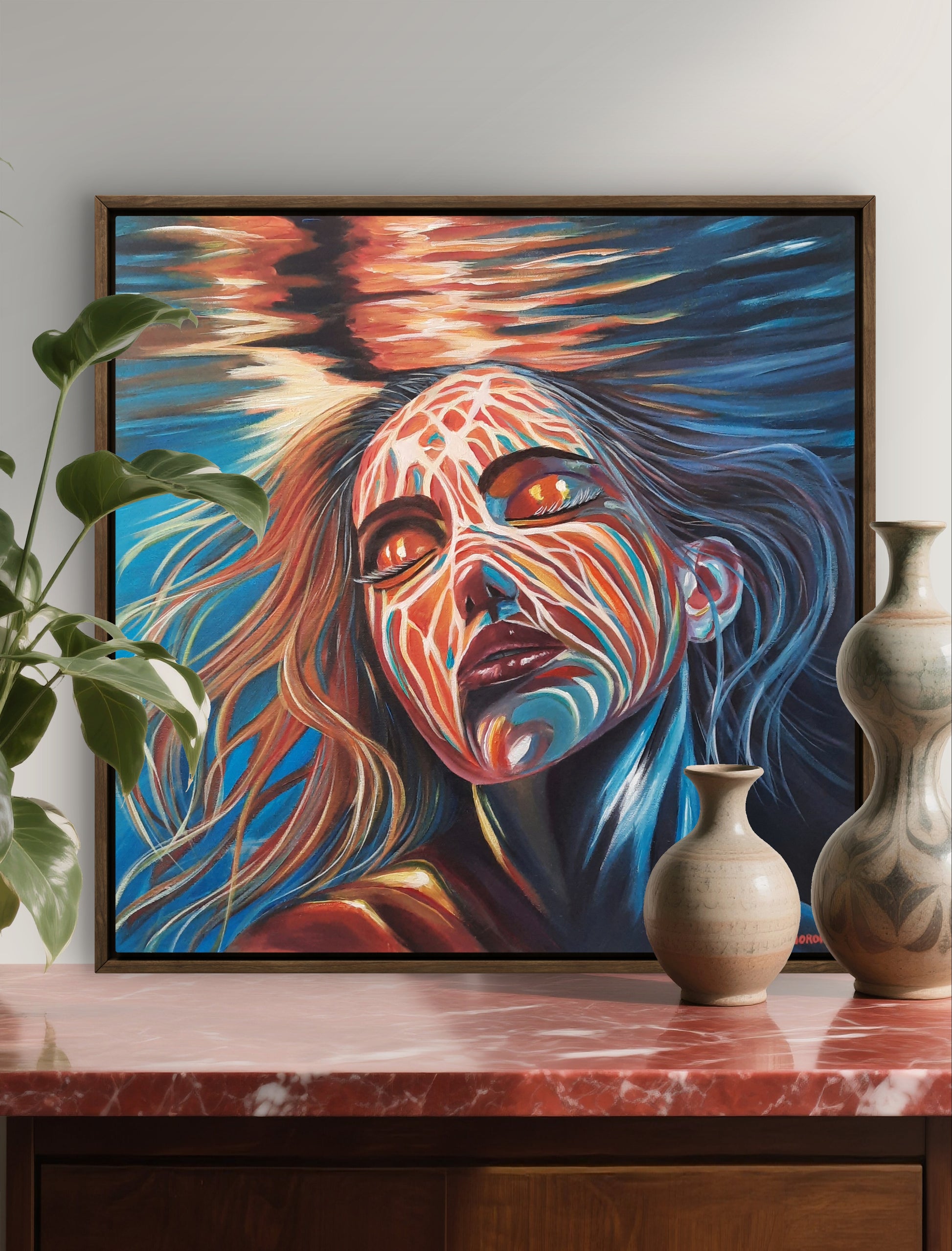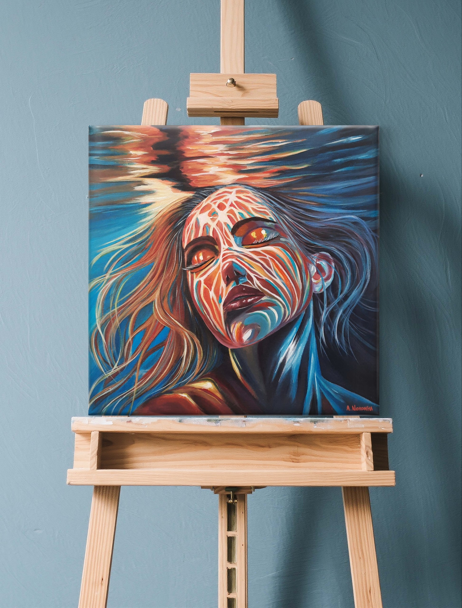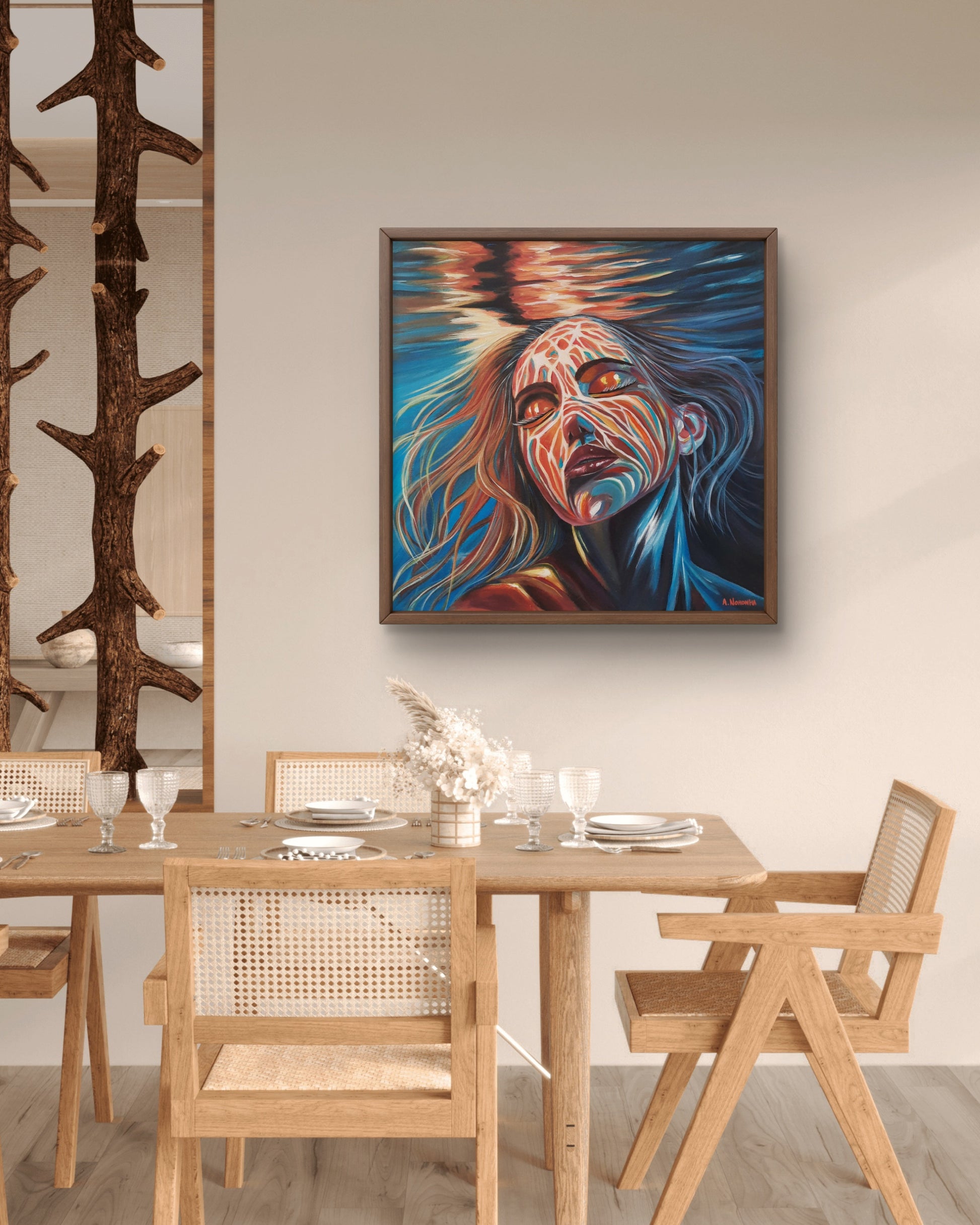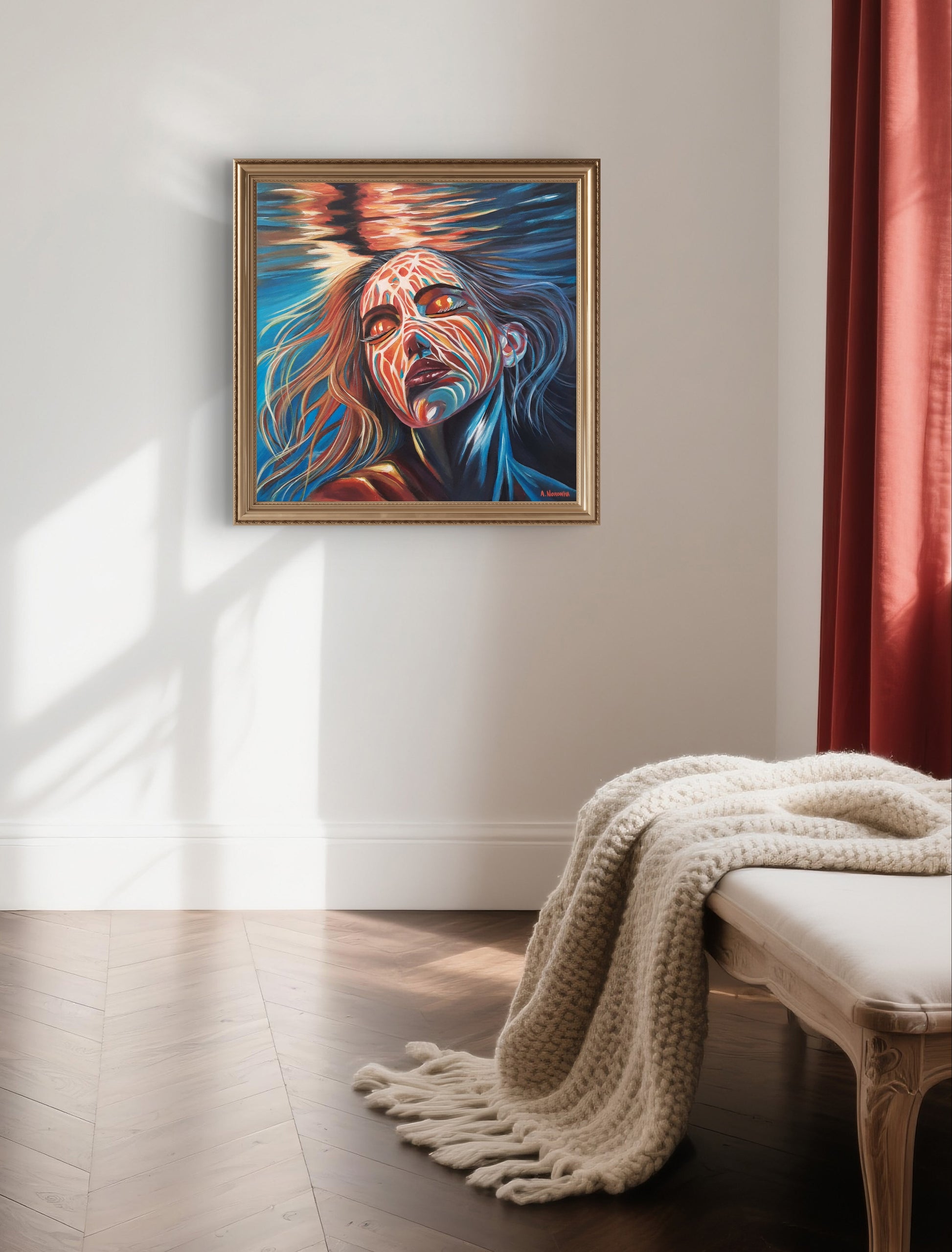 Silent Flames embodies the tension between stillness and intensity — the fire that burns quietly within. Subtle layers of red and gold tones merge with translucent whites, creating a poetic contrast between inner strength and gentle vulnerability. The work captures the essence of silent passion, a moment suspended between emotion and restraint.