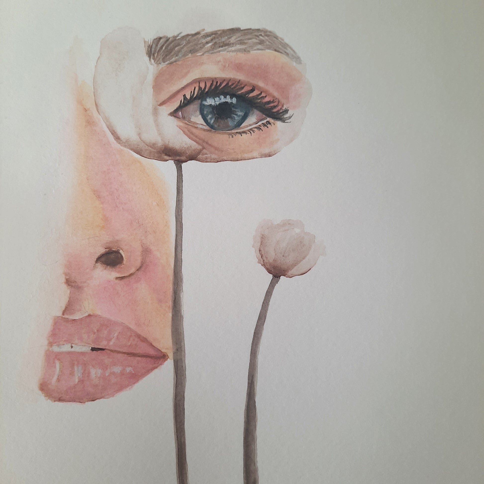 A single eye meets the viewer through a delicate veil of soft blossoms. Whisper of Petals speaks of stillness, vulnerability, and the subtle beauty of the in-between. A gentle watercolor portrait that evokes both strength and tenderness.